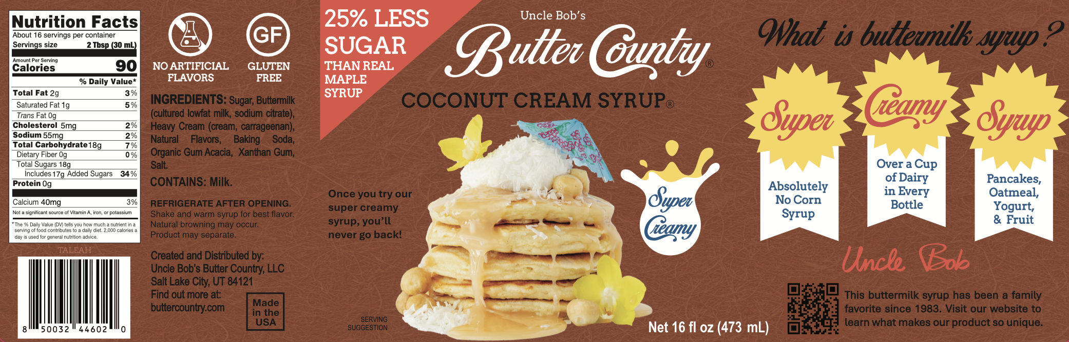 Our all-natural Buttermilk Syrups are made with buttermilk and whipping cream to bring you a deliciously creamy and smooth syrup. Bring your Hawaiian vacation memories to your kitchen table with our Coconut Cream Syrup! This creamy coconut flavor is reminiscent of the tropics and pairs well with a variety of foods.