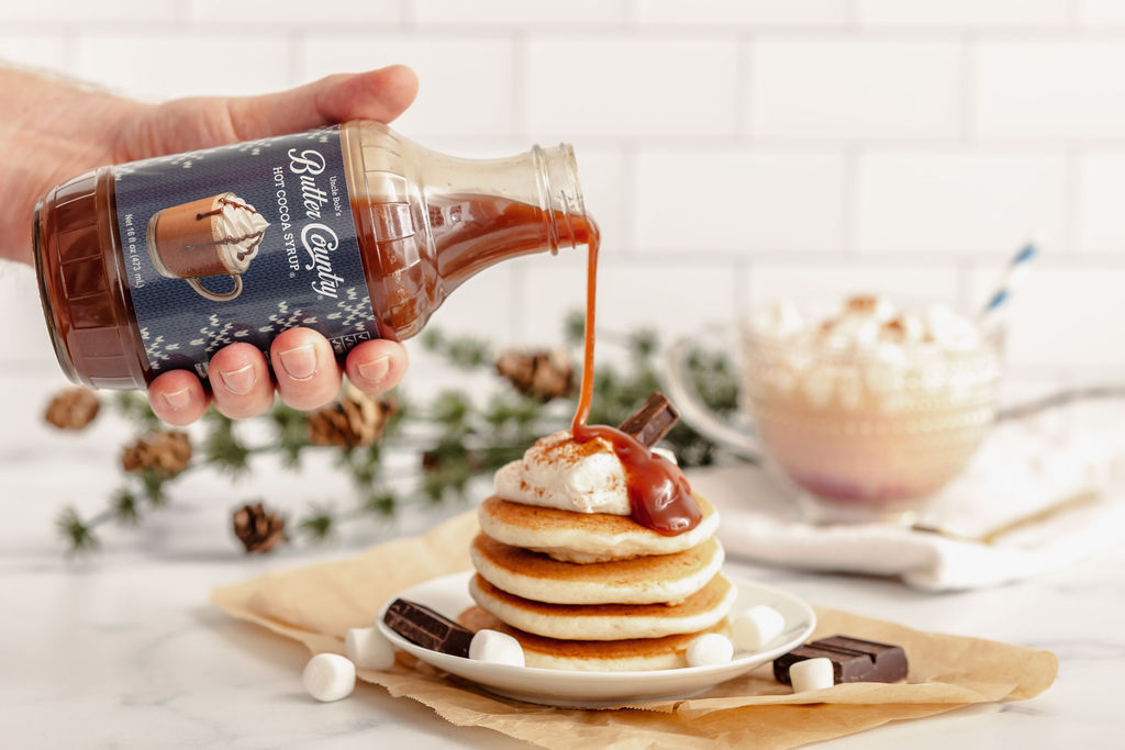 (Seasonal) Our all-natural Buttermilk Syrups are made with buttermilk and whipping cream to bring you a deliciously creamy and smooth syrup. Indulge in rich, chocolatey comfort with our Hot Cocoa Syrup—a velvety blend that captures the taste of a mug of homemade cocoa in every bite. Perfect for cozy winter mornings or chilly evenings.