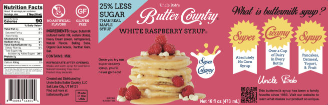 Our all-natural Buttermilk Syrups are made with buttermilk and whipping cream to bring you a deliciously creamy and smooth syrup. We’re bringing fruity breakfasts to your table with our White Raspberry Syrup. Its raspberries ‘n cream flavor is the perfect topping for food any time of year.